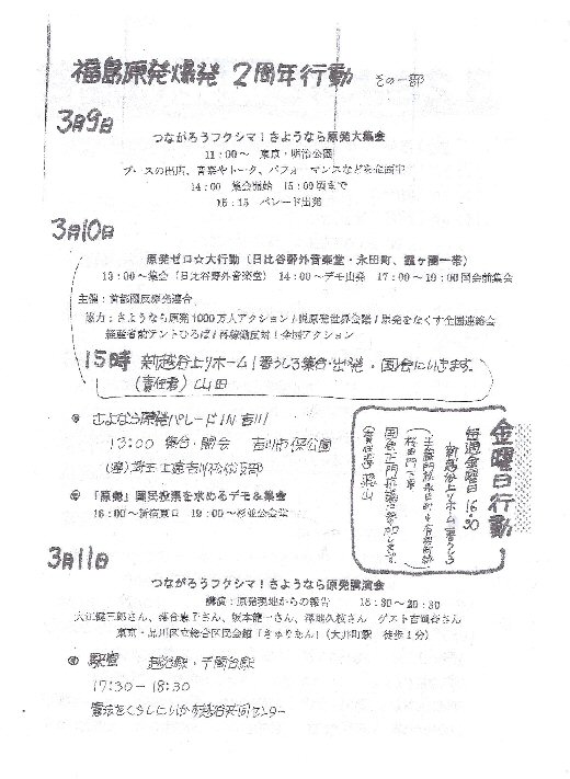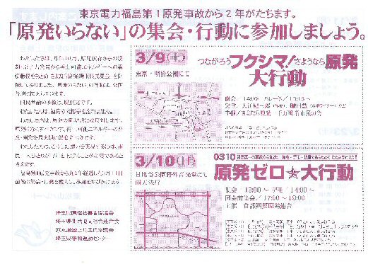 福島第一原発事故から丸2年経過した3月11日前後の集会・行動を
